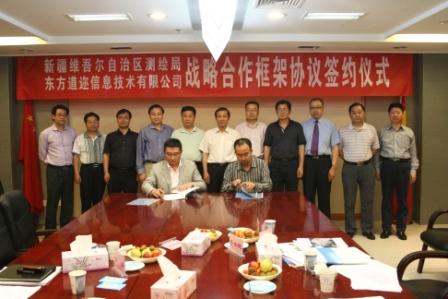 2010年5月31日,东方道迩与新疆维吾尔自治区测绘局在乌鲁木齐举行战略合作框架协议签约仪式。新疆维吾尔自治区测绘局国土资源厅党组成员、测绘局党组书记刘戈青,自治区测绘局局长李全战,自治区测绘局办公室主任袁一鸣,自治区测绘局计划财务处处长宋毅,自治区测绘局国土测绘技术监督处处长邓新安,自治区测绘局地图管理处处长张麒,自治区第一测绘书记、院长许捷,自治区第二测绘院院长刘涛,自治区基础地理信息中心主任刘斌,公司总裁孙冰,副总裁李海鸿,遥感事业部副总经理周自宽,测绘工程部总经理张生德,地理信息系统部副总经理周海兵等出席签约仪式。